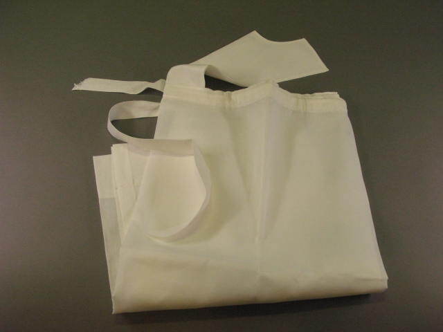 Katoenen boezelaar met in keper geweven banden. Bovenstuk zonder sluiting. Gemaakt bij KB 2039, burgerweeshuiskleding.- Trefwoorden