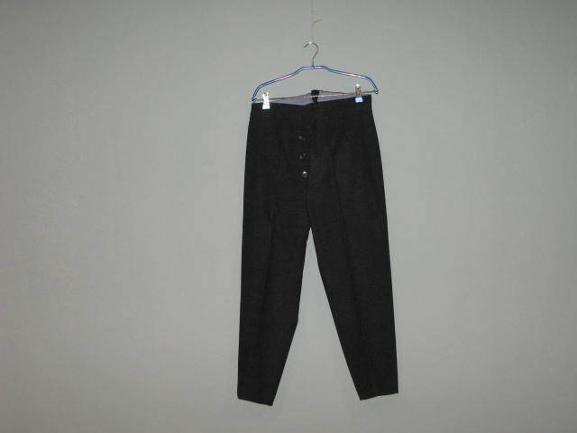 Zwarte pantalon met knoopsluiting en haakje. Aan achterzijde een verhoogde taille en riempje om op maat te stellen. Een kopie van een burgerweeshuis-jongensbroek. Volgens patroon van een originele broek van het burgerweeshuiskostuum. De broek is gemaakt voor bij: KB 2101 (jasje)