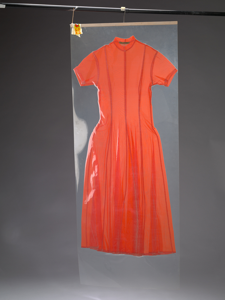 Deze oranje japon is vervaardigd door het Amsterdamse modelabel Puck & Hans, opgericht door modeontwerpersechtpaar Puck Kroon (1941) en Hans Kemmink (1947). In 1967 openden Puck & Hans hun eerste winkel in Den Haag. Vanaf 1974 hadden ze ook een boetiek aan het Rokin te Amsterdam, met exclusieve en praktische kleding in moderne, eigenzinnige stoffen. De stijlvolle etalage aan het Rokin was voor voorbijgangers altijd een lust voor het oog. Begin 1998 is de winkel gesloten. ( Sarah Remmerts de Vries)