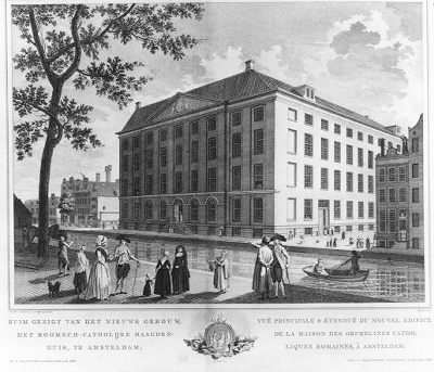 - Ruim gezicht van het nieuwe gebouw, het Roomsch-Catholyke maagdenhuis, te Amsteldam, 1786
