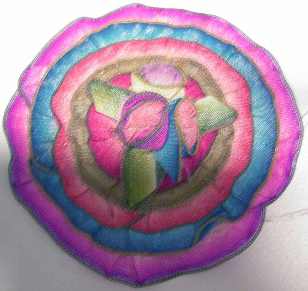 Rond, pasteltinten. In het midden drie bloemetjes.- Trefwoorden