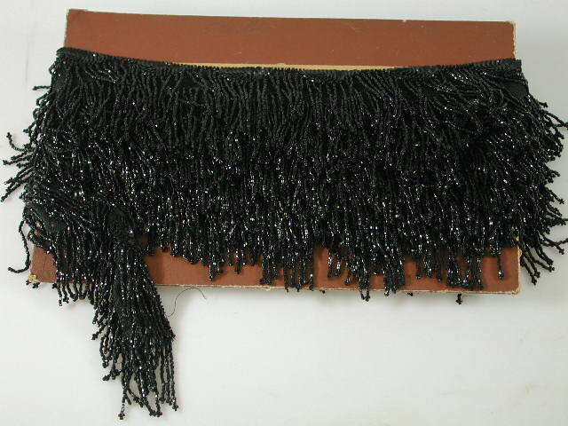 Strook franje van zwarte kraaltjes gezet op tule- Trefwoorden