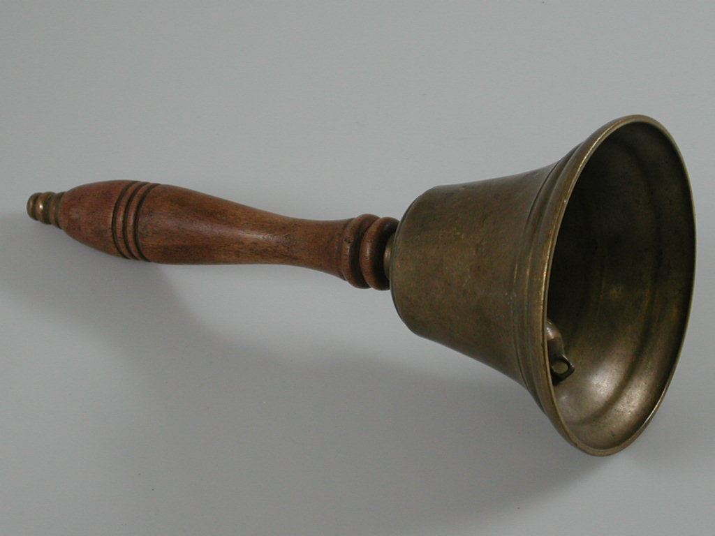 Geelkoperen bel aan handvat.- Trefwoorden