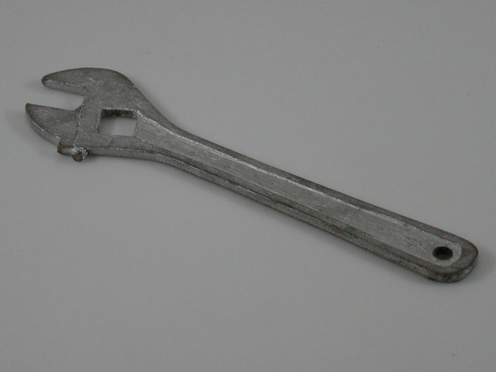 Houten tang, zgn 'baco', zilver geverfd.- Trefwoorden