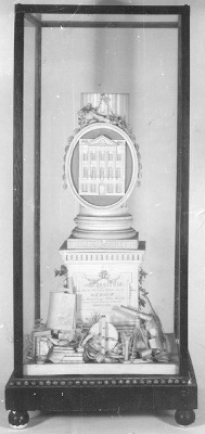 - hoogte: 40.5 cm; breedte: 23 cm; diepte: 23 cm; hoogte m/vitrine: 59.7 cm; breedte m/vitrine: 27.5 cm; diepte m/vitrine: 27 cm;