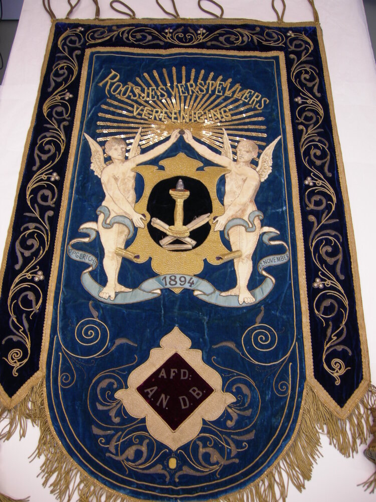 Vaandels zijn de trots van vakbonden, sportverenigingen of belangenverenigingen, zoals ook die van verenigingen voor vrouwenkiesrecht. De van oorsprong militaire traditie van vaandels is in de 19de eeuw door allerlei emanciperende groepen overgenomen. Het lijkt wel of iedereen aan het einde van de eeuw achter een vaandel aan marcheert. De vaandels zijn statussymbolen, vervaardigd van kostbare stoffen en geborduurd met gouddraad. De belettering is fors zodat de teksten ook van afstand goed leesbaar zijn. ( Sarah Remmerts de Vries)