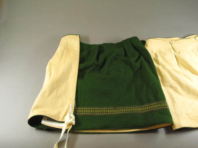 Groen wollen val met beige katoen gevoerd, onderrand afgezet met band.- Trefwoorden