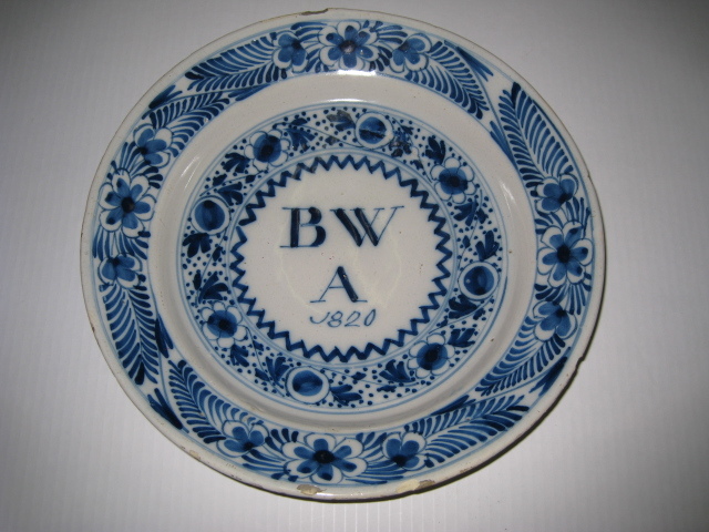 In 1820 vierde het Amsterdamse Burgerweeshuis zijn driehonderdjarig bestaan. Vanaf de oprichting in 1520 konden kinderen van Amsterdamse poorters (burgers met rechten om in de stad te wonen) die geen ouders of een moeilijke thuissituatie hadden, in het weeshuishuis terecht. Op 6 april 1820 werd het jubileum uitbundig gevierd met een feestrede van burgemeester en Regent van het Burgerweeshuis Frederik van de Poll en een optreden van een koor van weeskinderen voor onder meer koning Willem I. De Burgerwezen kregen een feestmaaltijd en een speciale medaille. Naar aanleiding van de feestviering zijn twee series borden besteld bij de Plateelbakkerij in Delft. Van deze serie zijn 44 exemplaren bewaard gebleven. ( Sarah Remmerts de Vries)