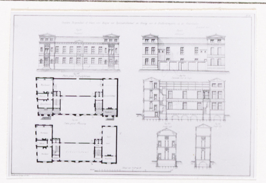 - Gevels en plattegrond van de Openbare Burgerschool op het Frederiksplein te Amsterdam (naar B. de Greef)
