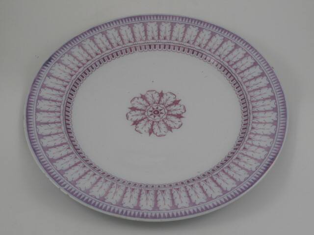 wit servies met een décor van gestileerde lichtpaarse acanthusbladeren- Trefwoorden