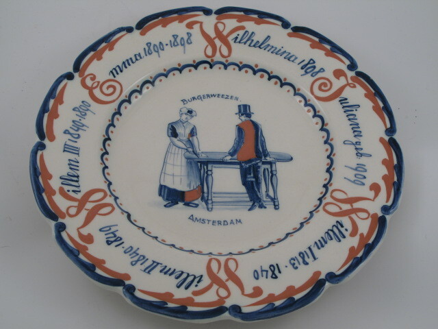 opschrift op de rand: Willem I 1813-1840 / Willem II 1840-1849 / Willem III 1849-1890 / Emma 1890-1998 / Wilhelmina 1898 / Juliana geb. 1909