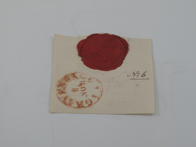 Stuk papier met lakzegel van opperbevelhebber Citadel, baron Chassé, 1800 - 1850 onbekend papier, lak breedte: 7 cm; diepte: 6.8 cm; diameter: 3.1 cm; opschrift voorzijde: N° 6
