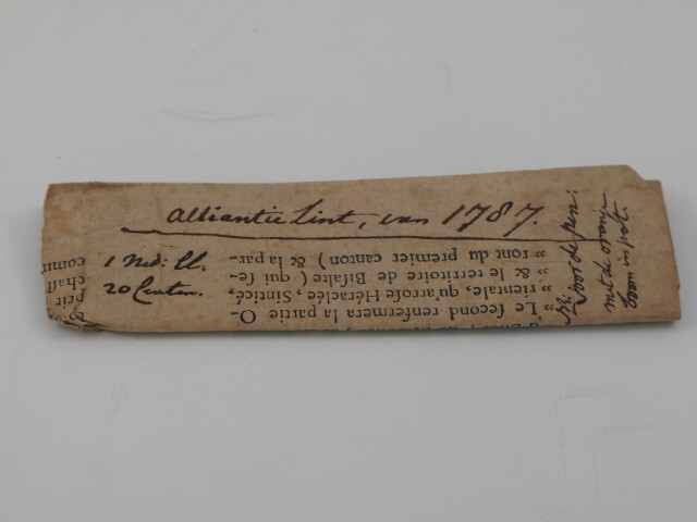 - Alliantielint 1787 (de Republiek, Engeland en Pruisen) in gevouwen pagina uit contemporain franstalig boek, 1780 - 1850