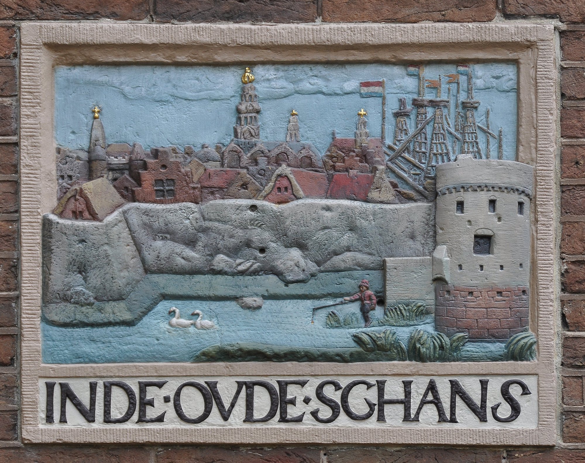 Het reliëf stelt een gezicht op Amsterdam voor vanuit het Oosten. ( Onno Boers)