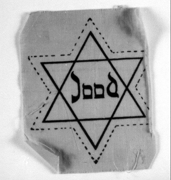 Lapje gele stof waarop in zwart een 6-puntige Davidsster is gedrukt- Trefwoorden