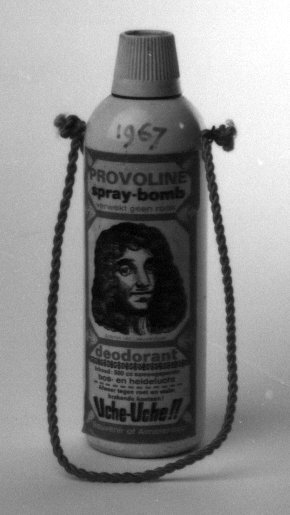 Bij een rel met de politie was gebleken dat een gewone spuitbus als een enorme vlammenwerper kon dienen. Sindsdien werden spuitbussen omgetoverd tot provoline. Het schrikeffect was groot, zeker na de beruchte rookbom tijdens het huwelijk van prinses Beatrix en prins Claus.