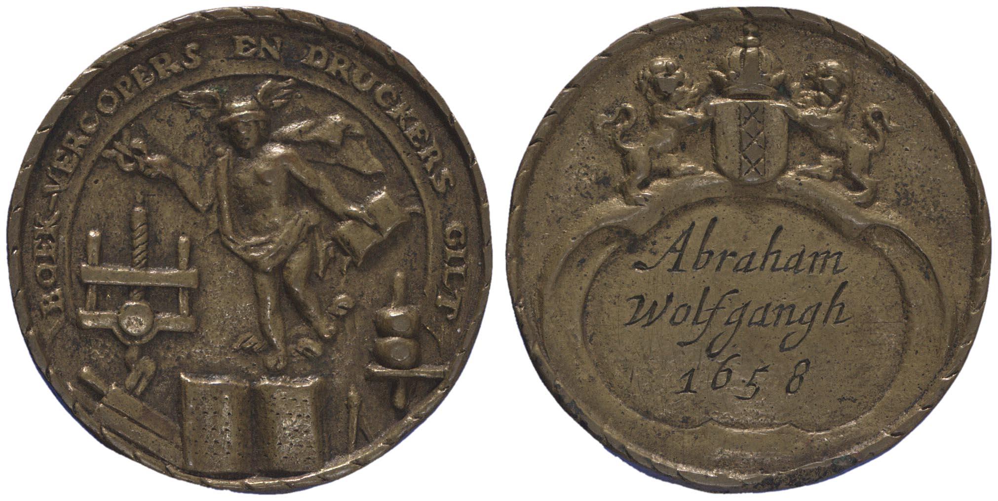 omschrift voorzijde: BOEK-VERCOPERS EN DRUCKERS GILT
