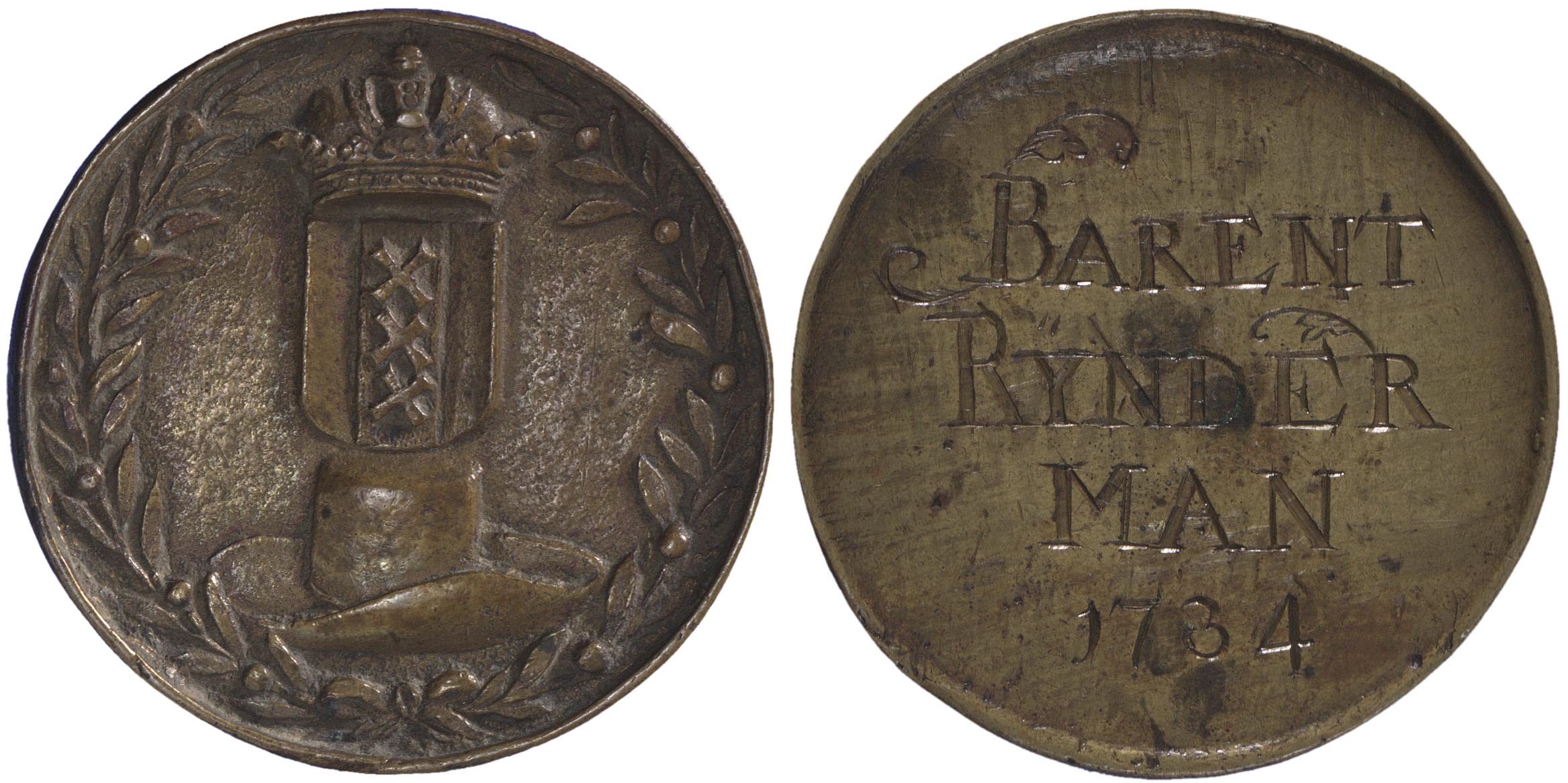 - signatuur, datering keerzijde: BARENT / RYNDER / MAN / 1734