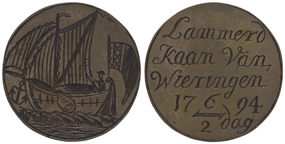 keerzijde: binnen een cirkelgroef een naam, dag en jaartal.