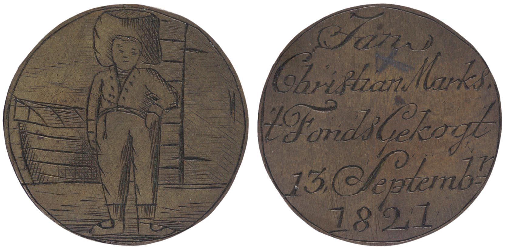 signatuur, datering keerzijde: Jan / Christian Marks. / 't Fonds Gekogt / 13, Septembr / 1821