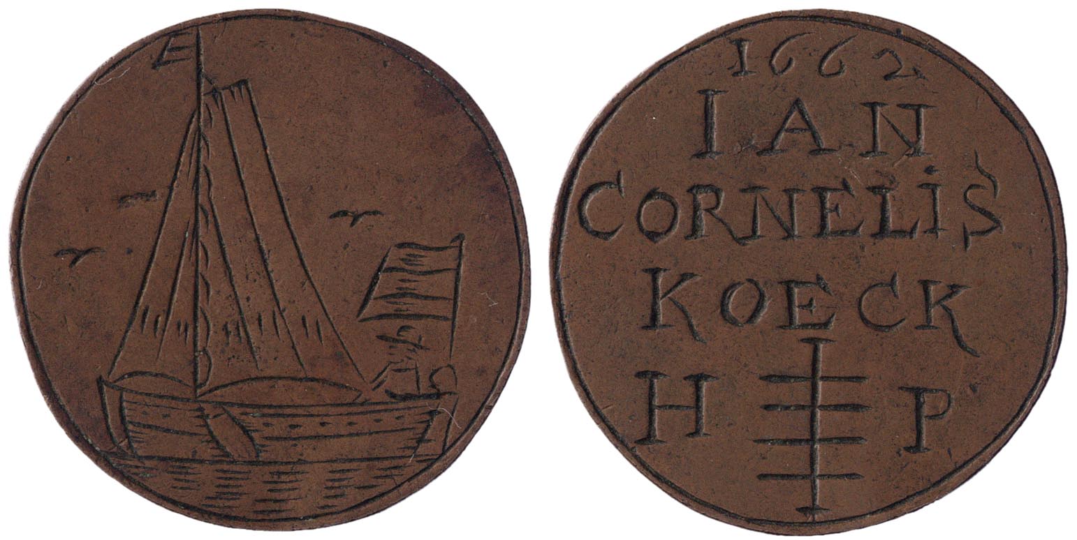 signatuur, datering keerzijde binnen cirkelgroef: 1662 / IAN / CORNELIS / KOECK / H P