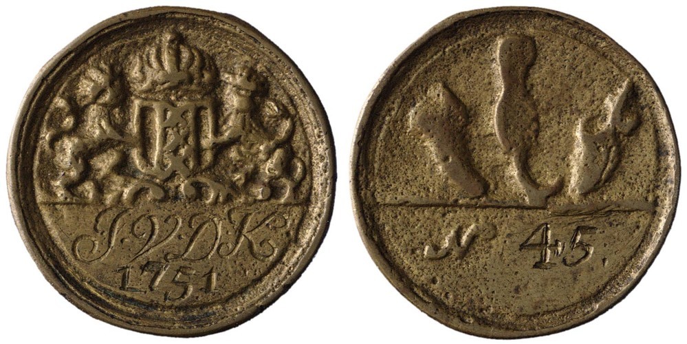 monogram / datering voorzijde in het veld onder het wapen van Amsterdam: J.V.D.K. / 1751