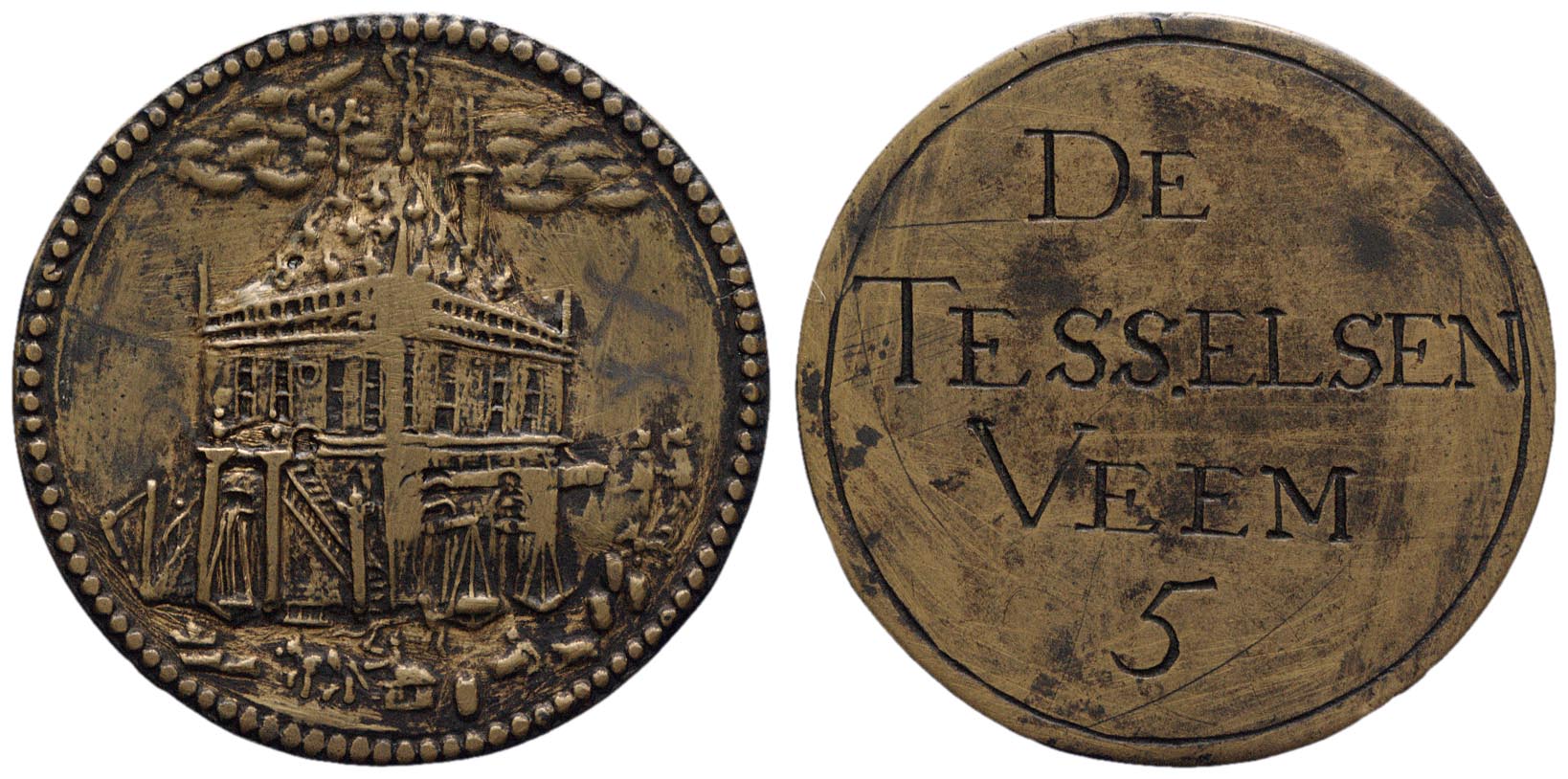 - opschrift keerzijde midden: DE / TESSELSEN / VEEM