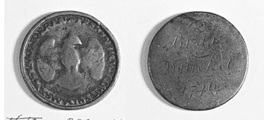 - Boodschappenpenning van de breiwinkel, Burgerweeshuis Amsterdam, 1746