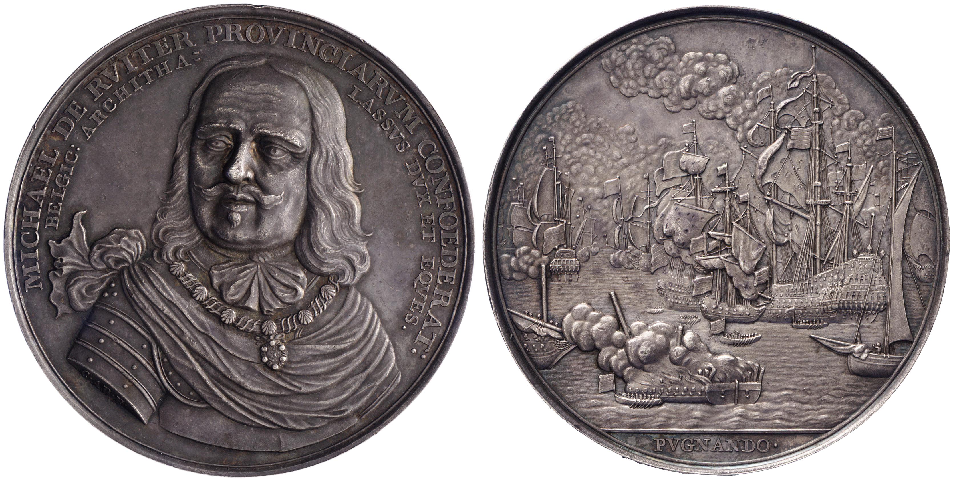 omschrift voorzijde: MICHAEL DE RVITER PROVINCIARVM CONFOEDERAT: BELGIC: ARCHITA: LASSVS DVX ET EQVES.