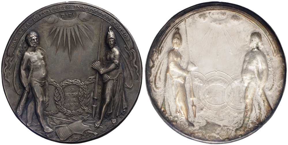 Een plaquette-penning die werd geslagen ter nagedachtenis aan de Vrede van Munster in 1648.