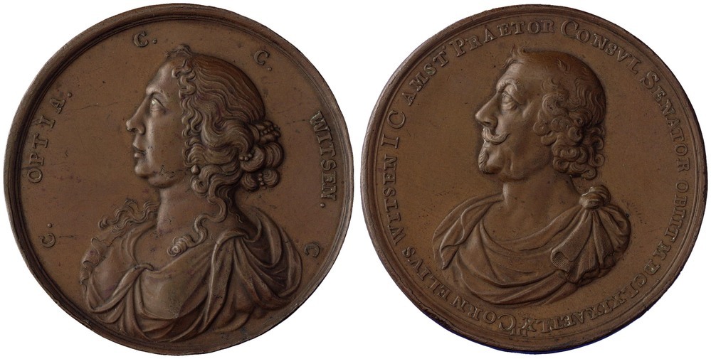 Voorzijde: borstbeeld van Cornelis Witsen naar links gewend met klassieke toga. Draagt snor en sik. Omschrift.