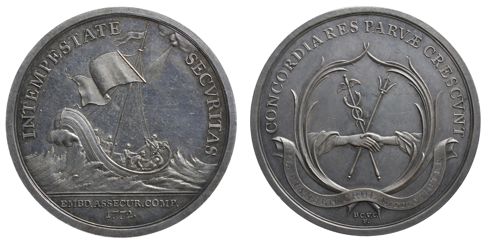 opschrift voorzijde in de afsnede: EMBD. ASSECUR. COMP. / 1772.