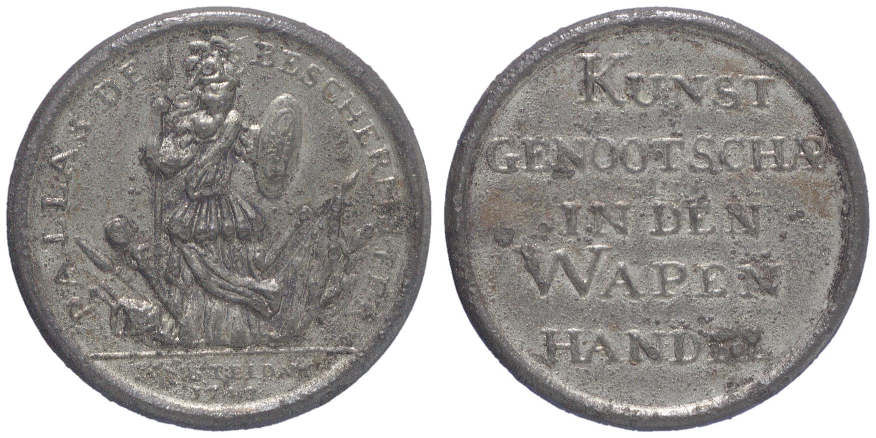 opschrift keerzijde: KUNST / GENOOTSCHAP / IN DEN / WAPEN / HANDEL