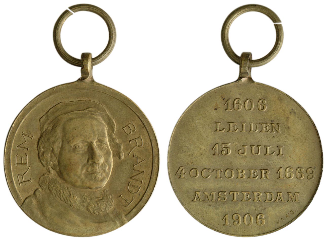 opschrift voorzijde: 1606 / LEIDEN / 15 JULI / 4 OCTOBER 1669 / AMSTERDAM / 1906