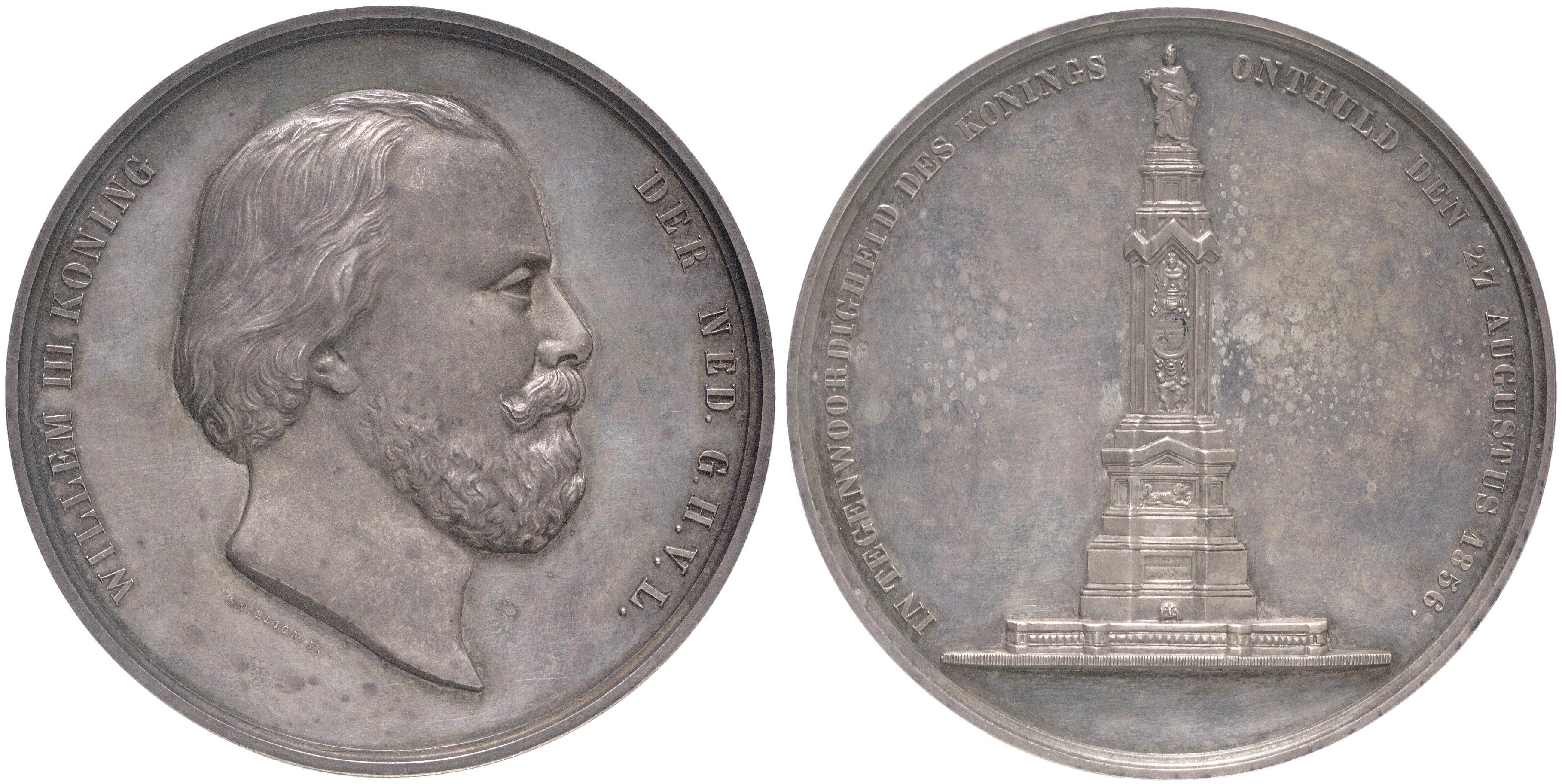 omschrift keerzijde: IN TEGENWOORDIGHEID DES KONINGS ONTHULD DEN 27 AUGUSTUS 1856