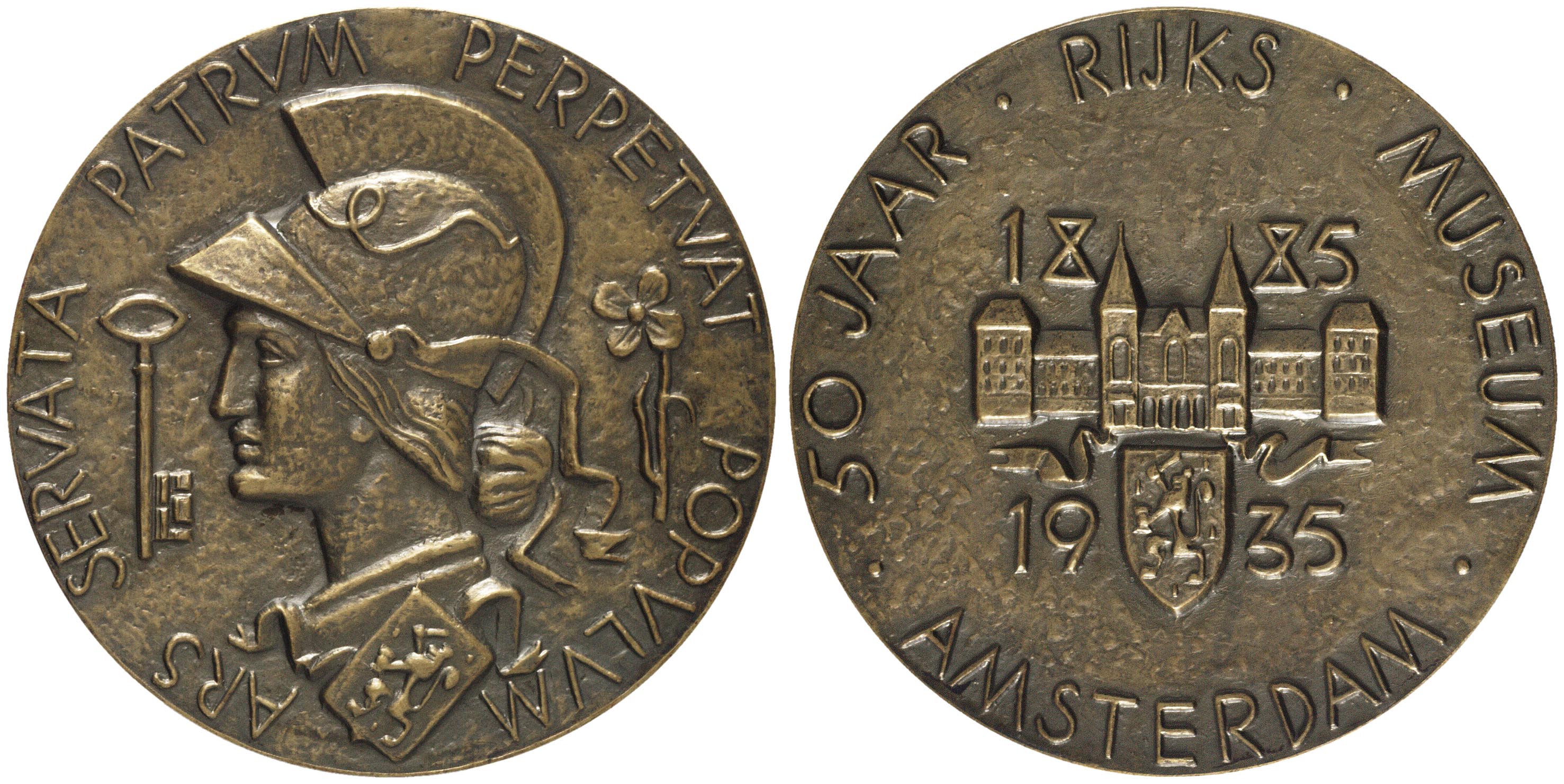 keerzijde: in een omschrift het Rijksmuseum waarboven een jaartal en onder een jaartal met het wapenschild van Nederland met een lint.