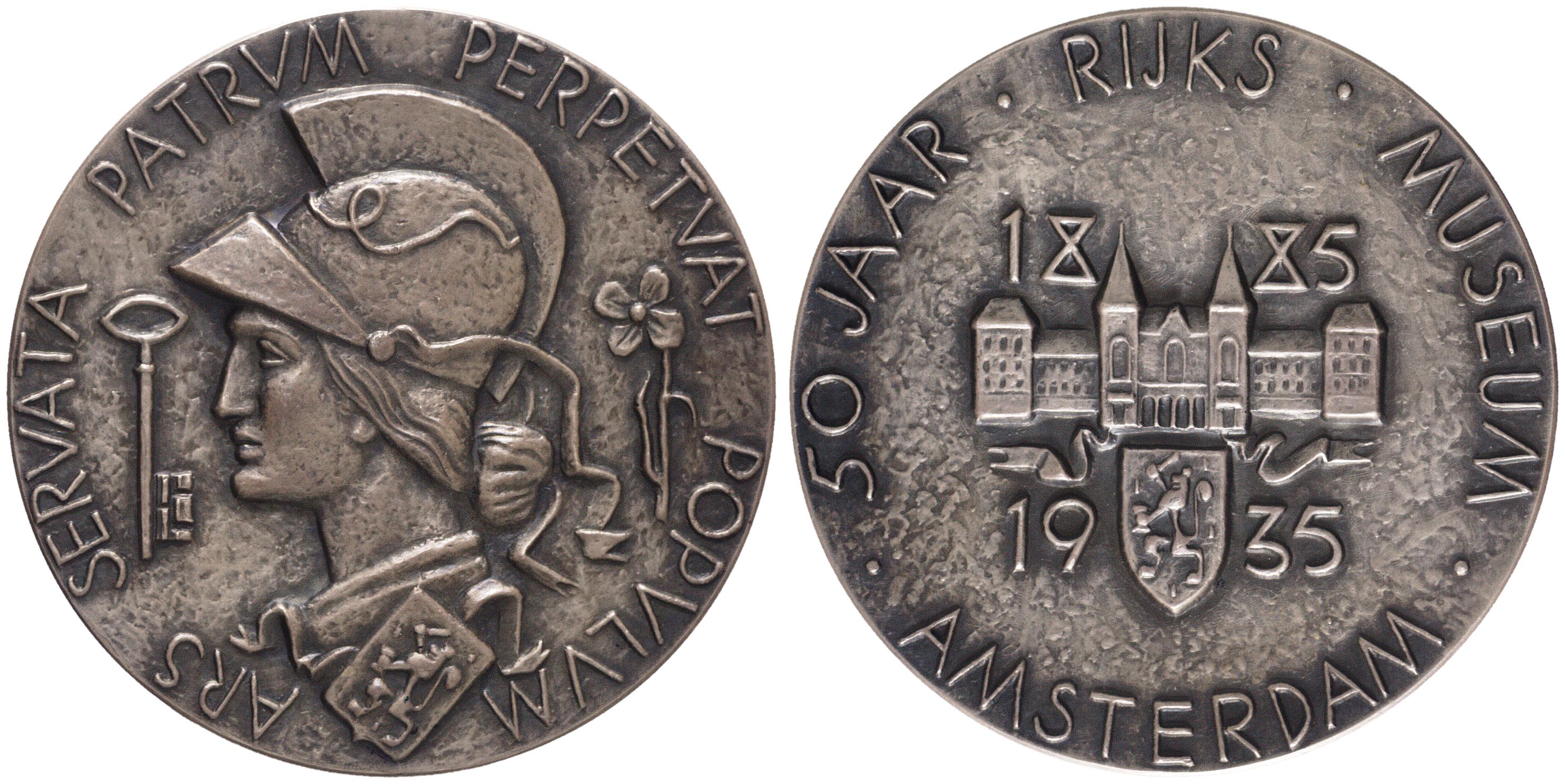 keerzijde: in een omschrift het Rijksmuseum waarboven een jaartal en onder een jaartal met het wapenschild van Nederland met een lint.