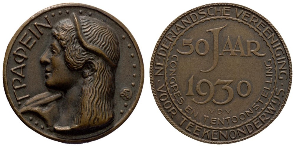 omschrift keerzijde: NEDERLANDSCHE VERENIGING VOOR TEEKENONDERWIJS