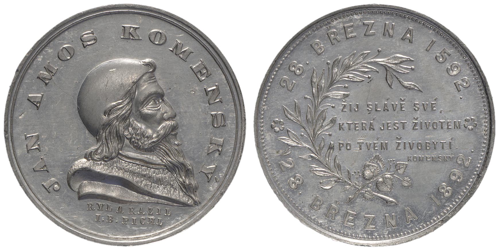 omschrift keerzijde: 28. BŘEZNA 1592. / 28. BŘEZNA 1892.