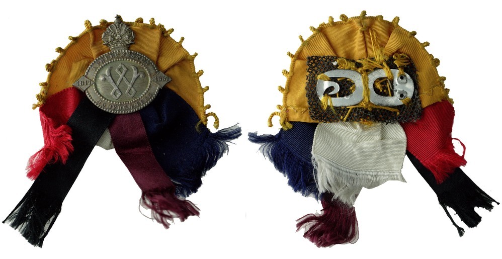 keerzijde: onbewerkt, met twee krammen op een half oranhe rozet, met afhangende brede linten in rood, wit en blauw, waar overheeh in zwart en rood eindigende smallere linten.