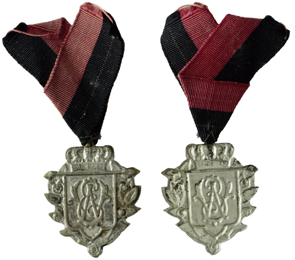 voorzijde: een gekroond wapenschild waarin het monogram WE van trekletters, omgeven door rozentakken. Bovenaan een oog waaraan een lint in de Amsterdamse kleuren.- Trefwoorden