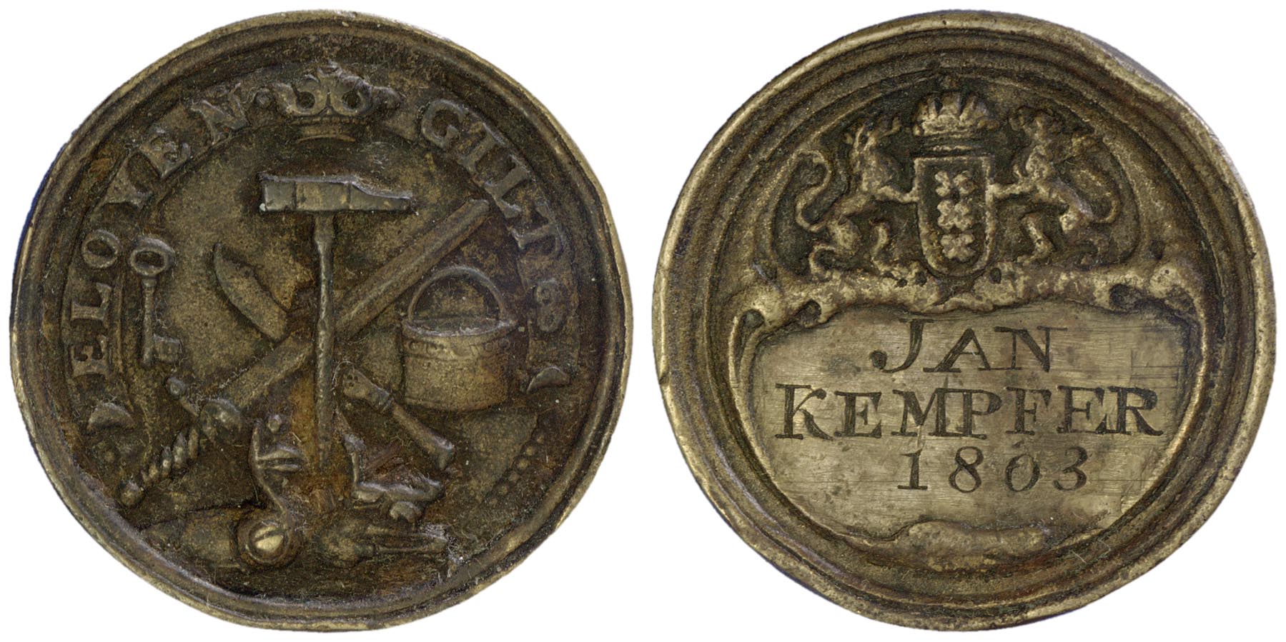 signatuur, datering voorzijde: JAN / KEMPFER / 1803