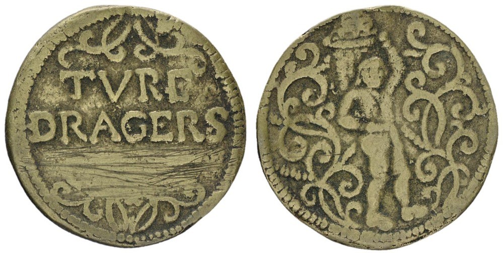- opschrift voorzijde midden: TVRF / DRAGERS / : op de voorzijde is het woord GILDT weggegraveerd