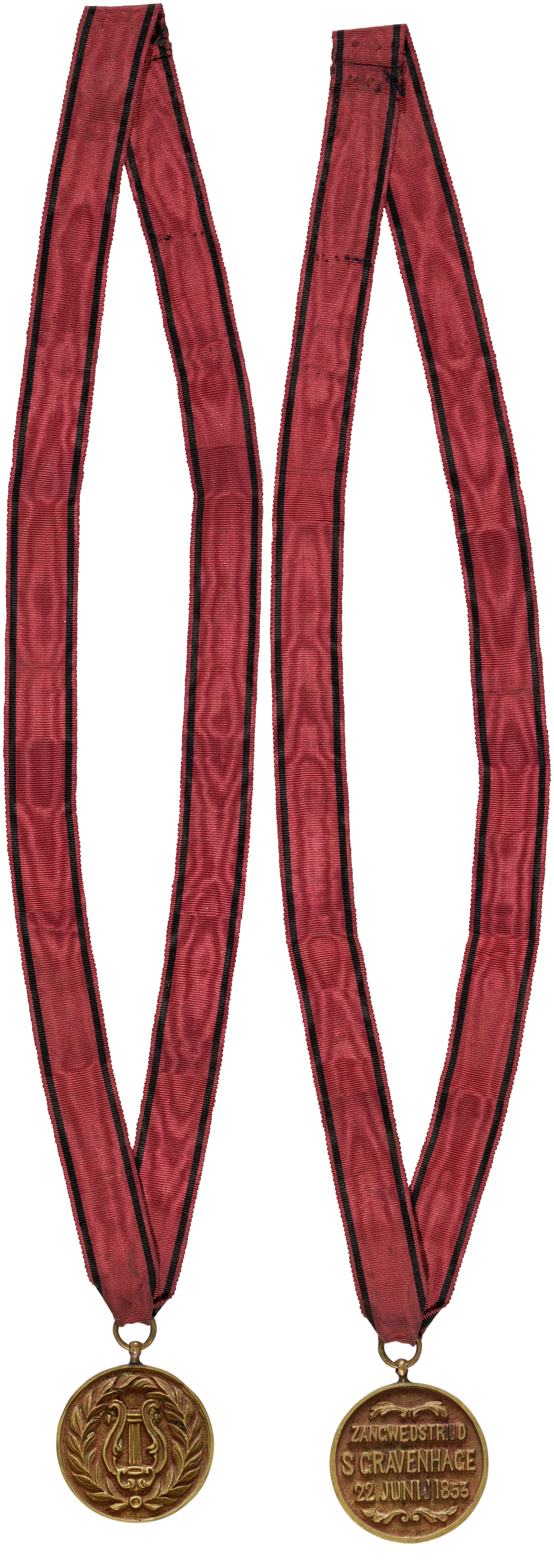 opschrift voorzijde: ZANGWEDSTRIJD / S GRAVENHAGE / 22 JUNIJ 1853
