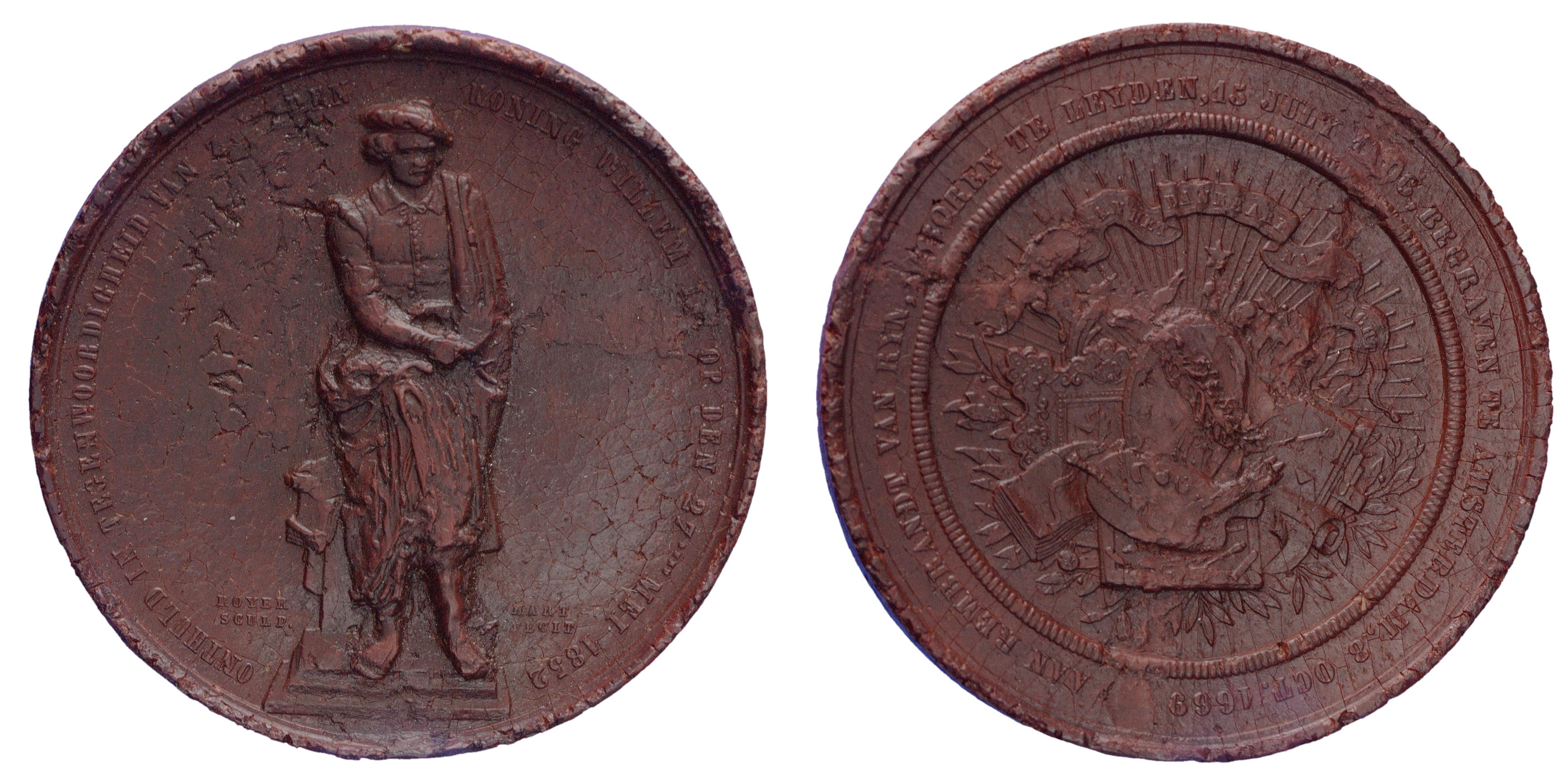 omschrift voorzijde: ONTHULD IN TEGENWOORDIGHEID VAN Z.M. DEN KONING WILLEM III OP DEN 27STEN MEI 1852
