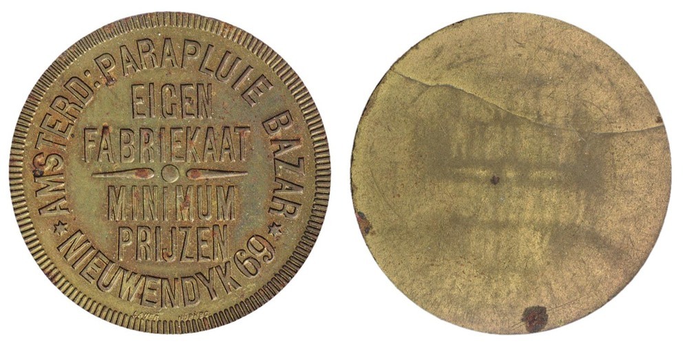 - opschrift voorzijde: AMSTERD:PARAPLUIE BAZAR *NIEUWENDYK 69*