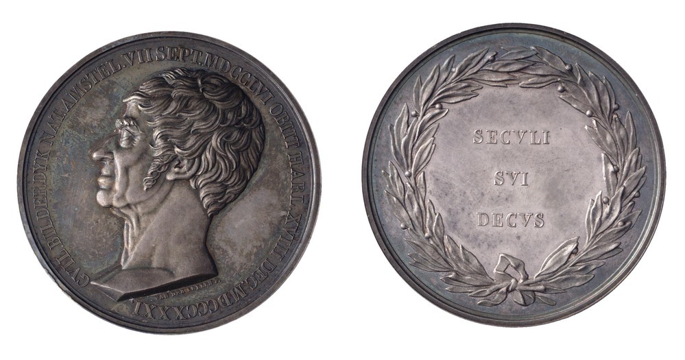 Beeld voorzijde: portret van Willem Bilderdijk Beeld keerzijde: opschrift binnen lauwerkrans- Trefwoorden