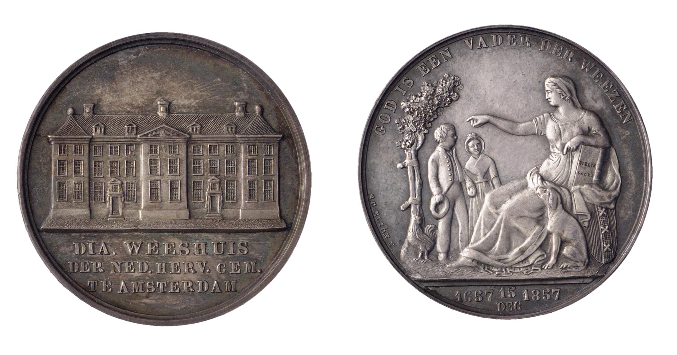 opschrift voorzijde in de afsnede: DIA. WEESHUIS / DER NED. HERV. GEM. / TE AMSTERDAM