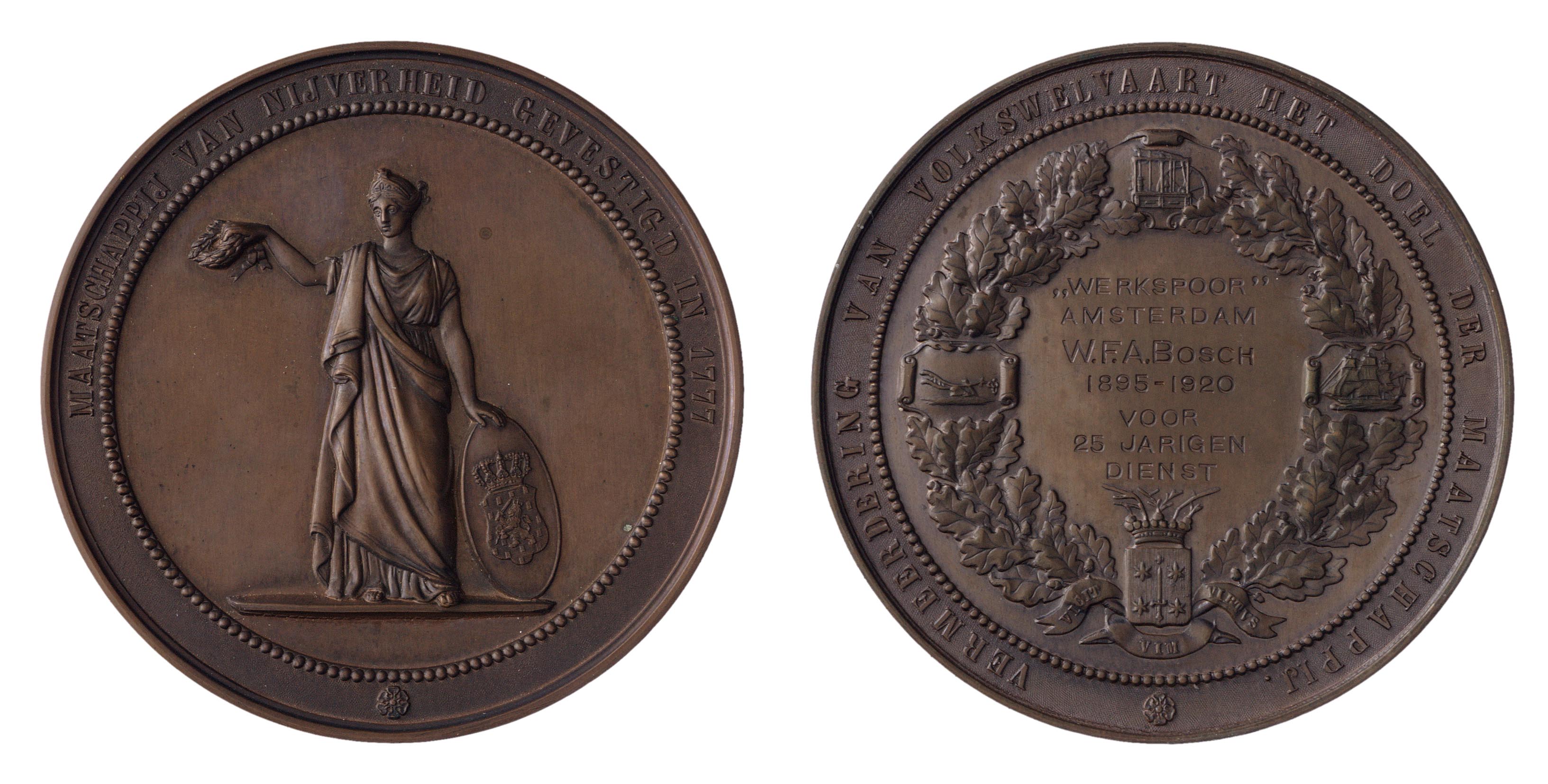 opschrift keerzijde: "WERKSPOOR" / AMSTERDAM / W.F.A.Bosch / VOOR / 25 JARIGEN / DIENST