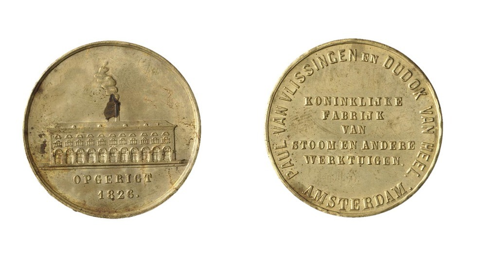 opschrift keerzijde: KONINKLIJKE / FABRIJK / VAN / STOOM EN ANDERE / WERKTUIGEN.